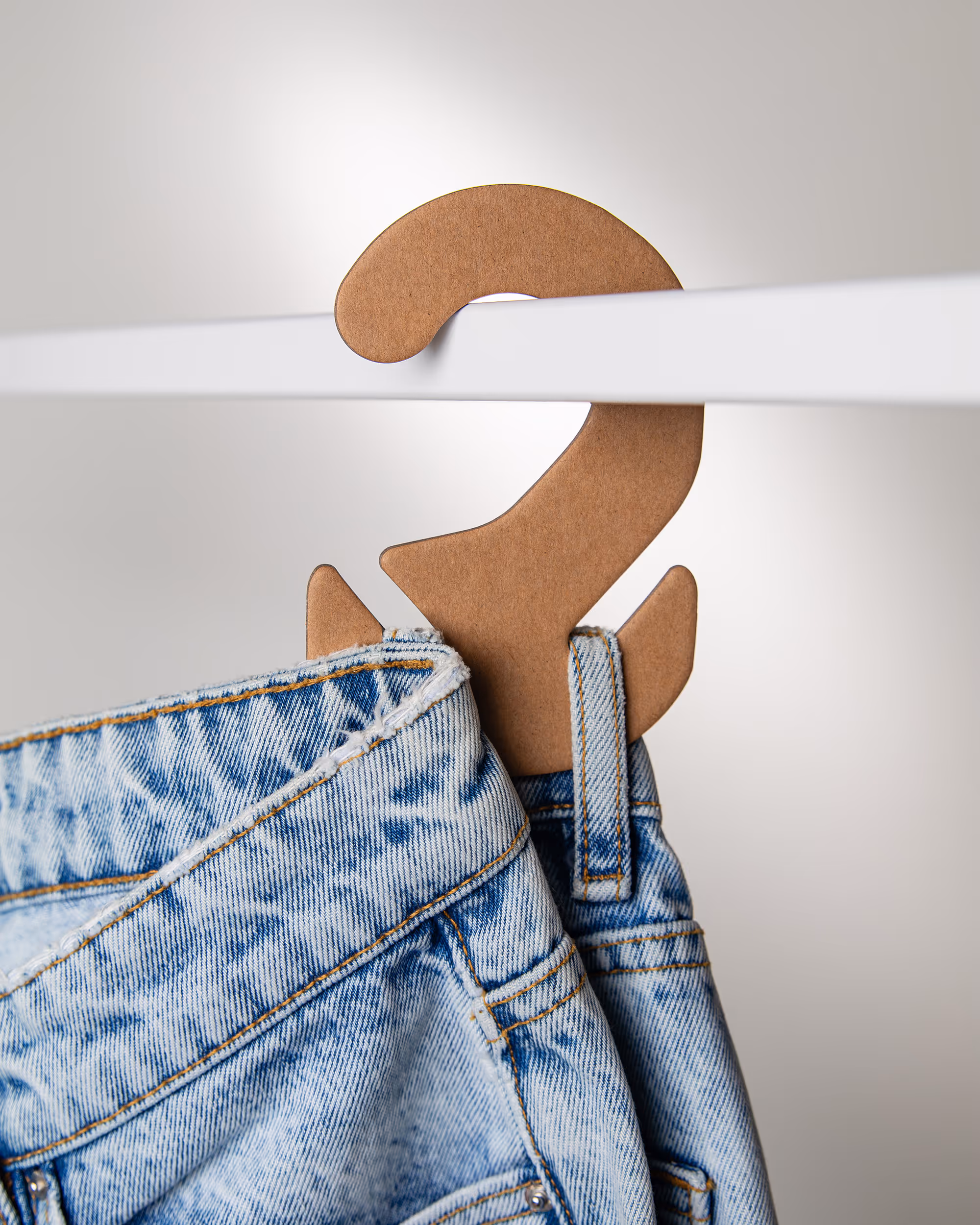 / Belt Loop Hangers: Garment remains uncreased with spacebetween loops, supporting jeans and tailored trousers.